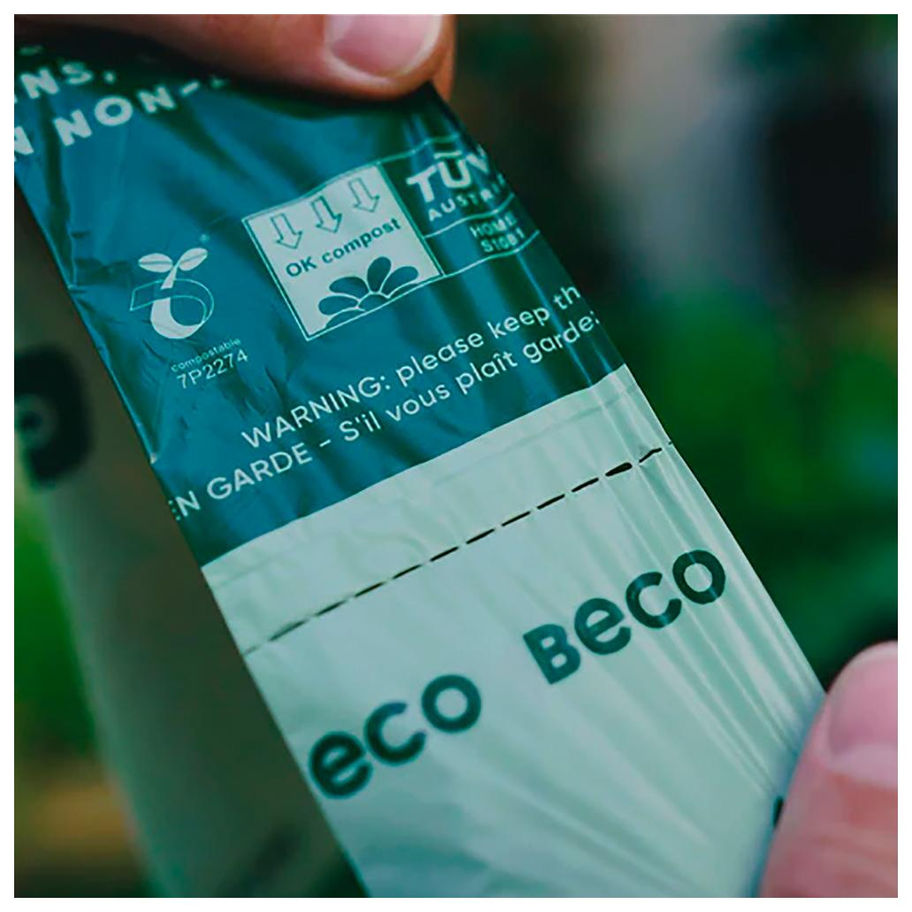 Sacos compostáveis para dejetos de animais, feitos à base de amido de milho, são totalmente biodegradáveis em condições naturais e podem ser compostados em casa. O rolo interior dos sacos, bem como a embalagem, é feito em material reciclado.